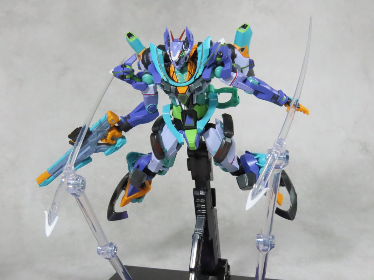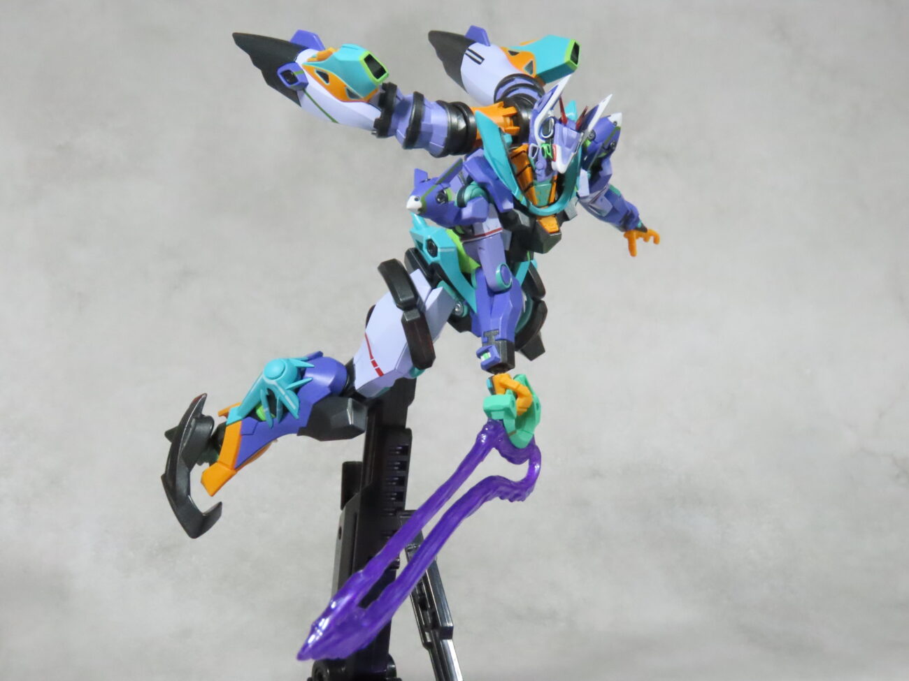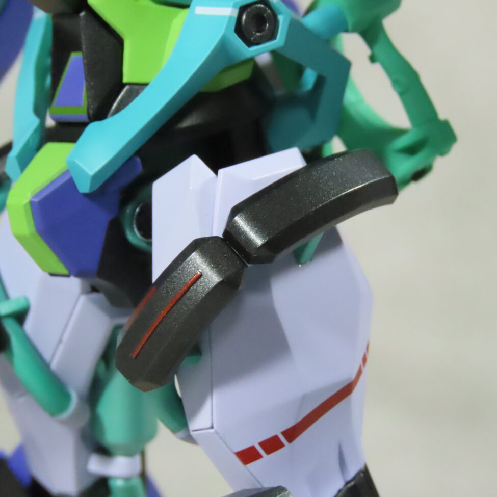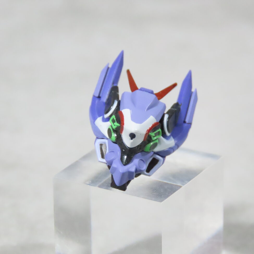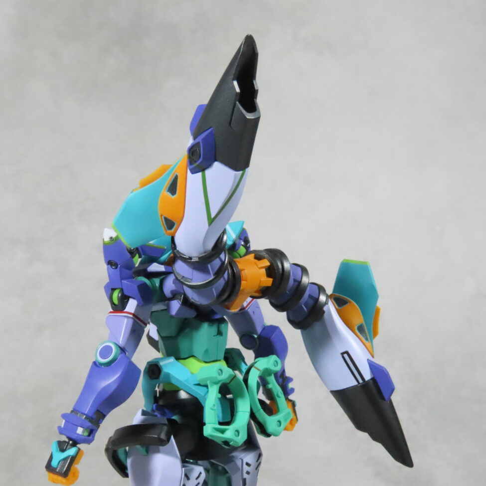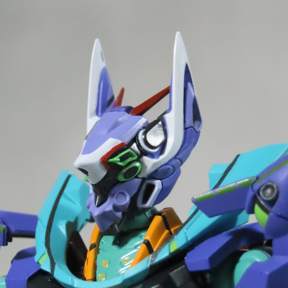 エヴァ初号機(最近メタルビルドで30周年のものがでた)の形状と似てて、紫や緑を基調としたカラーリングも影響している。