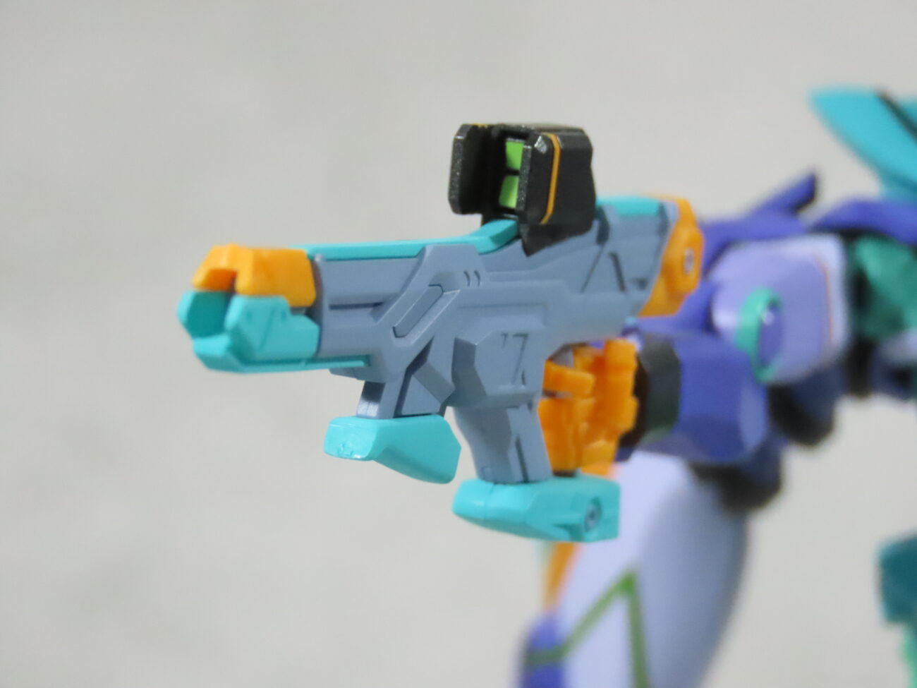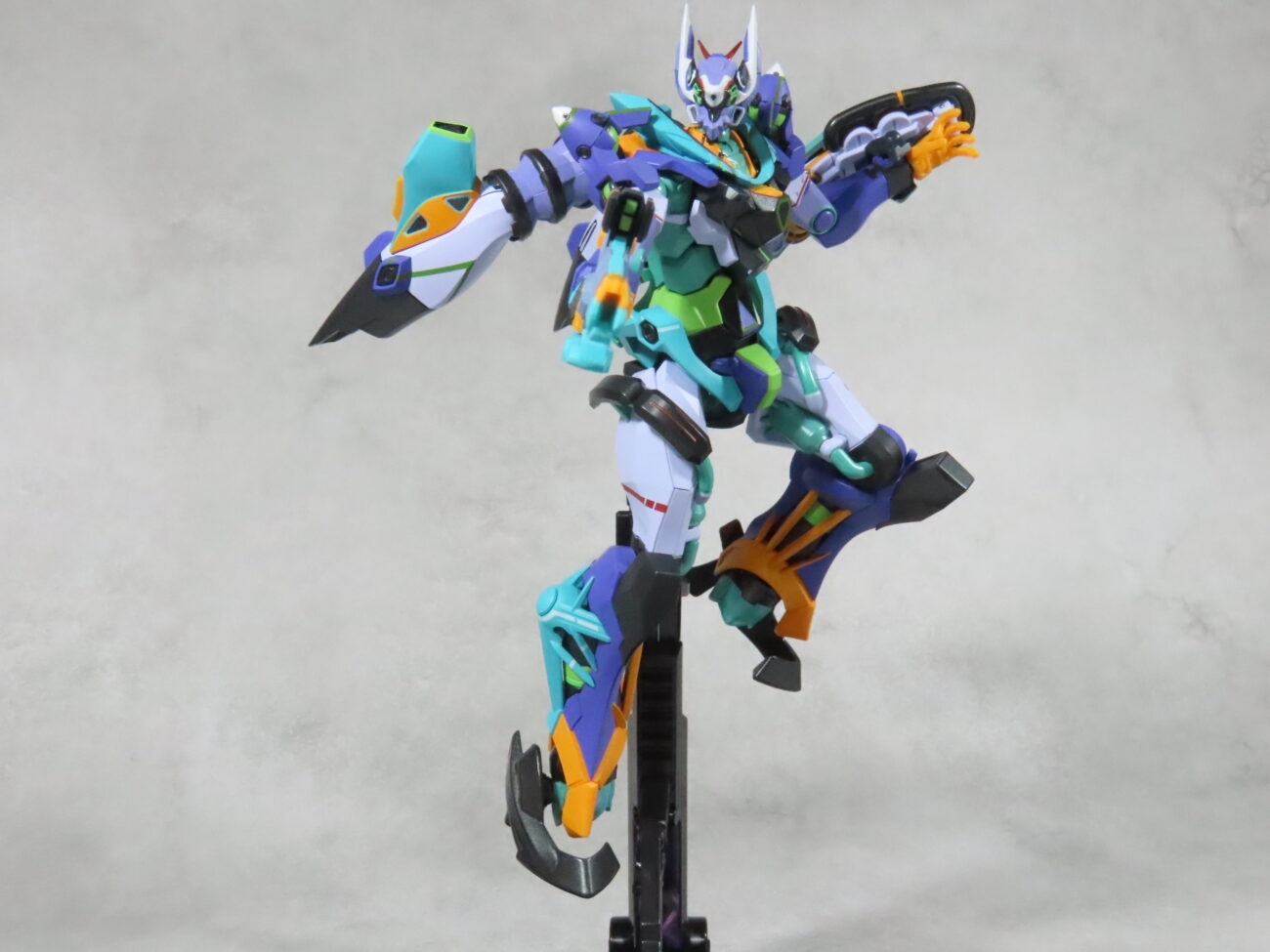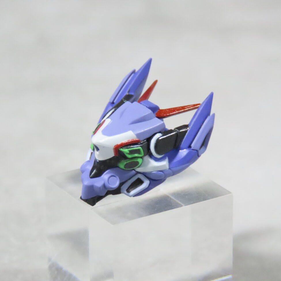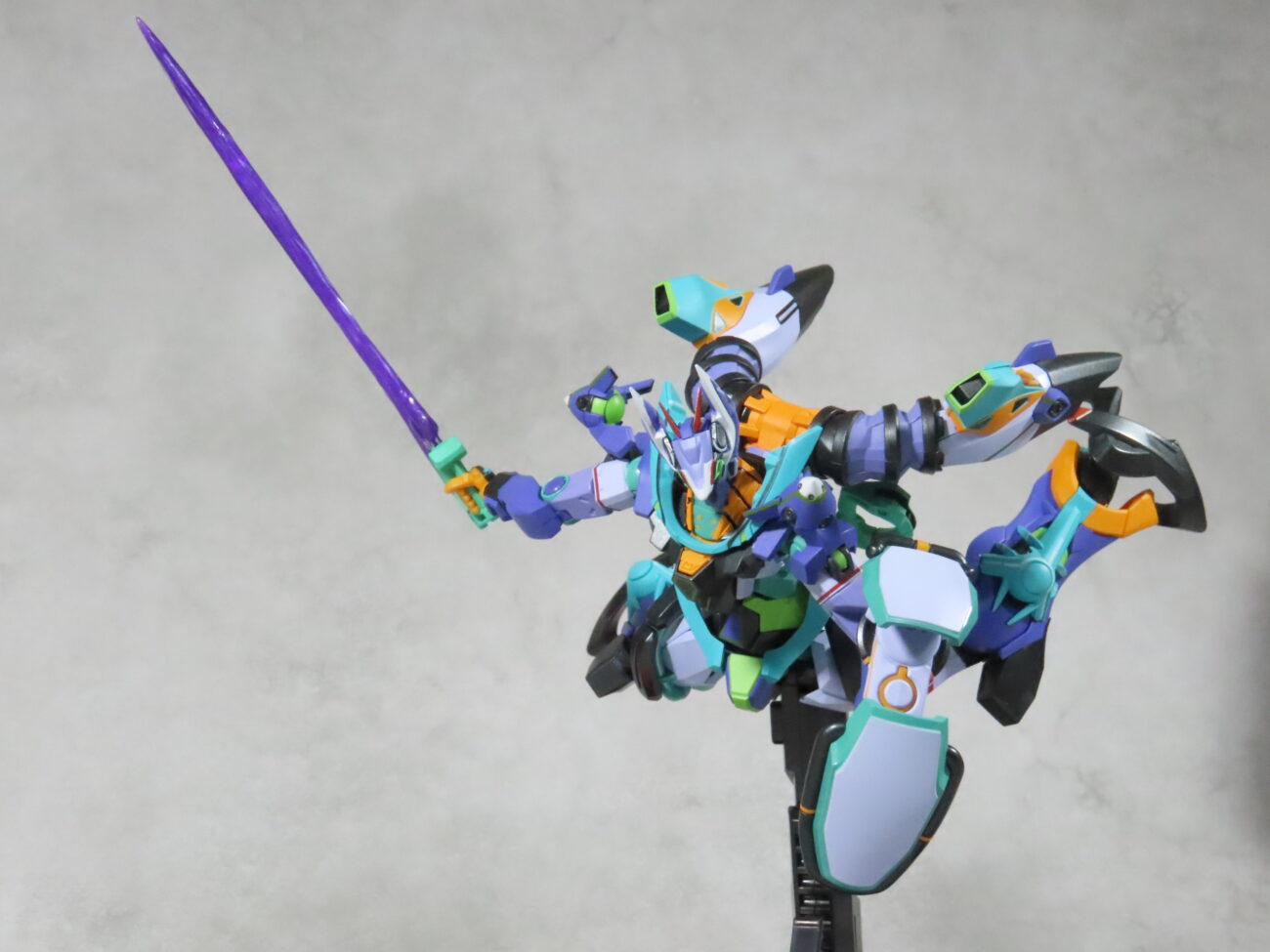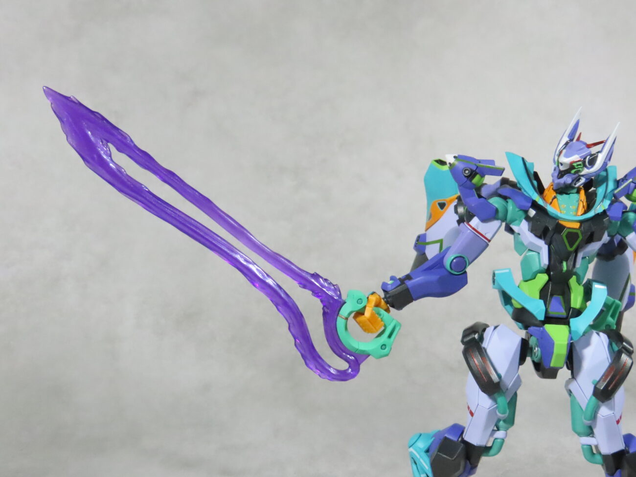 エヴァ初号機(最近メタルビルドで30周年のものがでた)の形状と似てて、紫や緑を基調としたカラーリングも影響している。