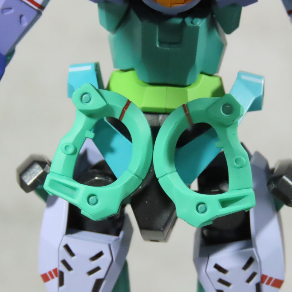 そのため、ジークアクスとプロポーションはほぼ同じ。異なるのは頭部、背面スラスター、肩部(ジークアクスは球状)の形状となります。