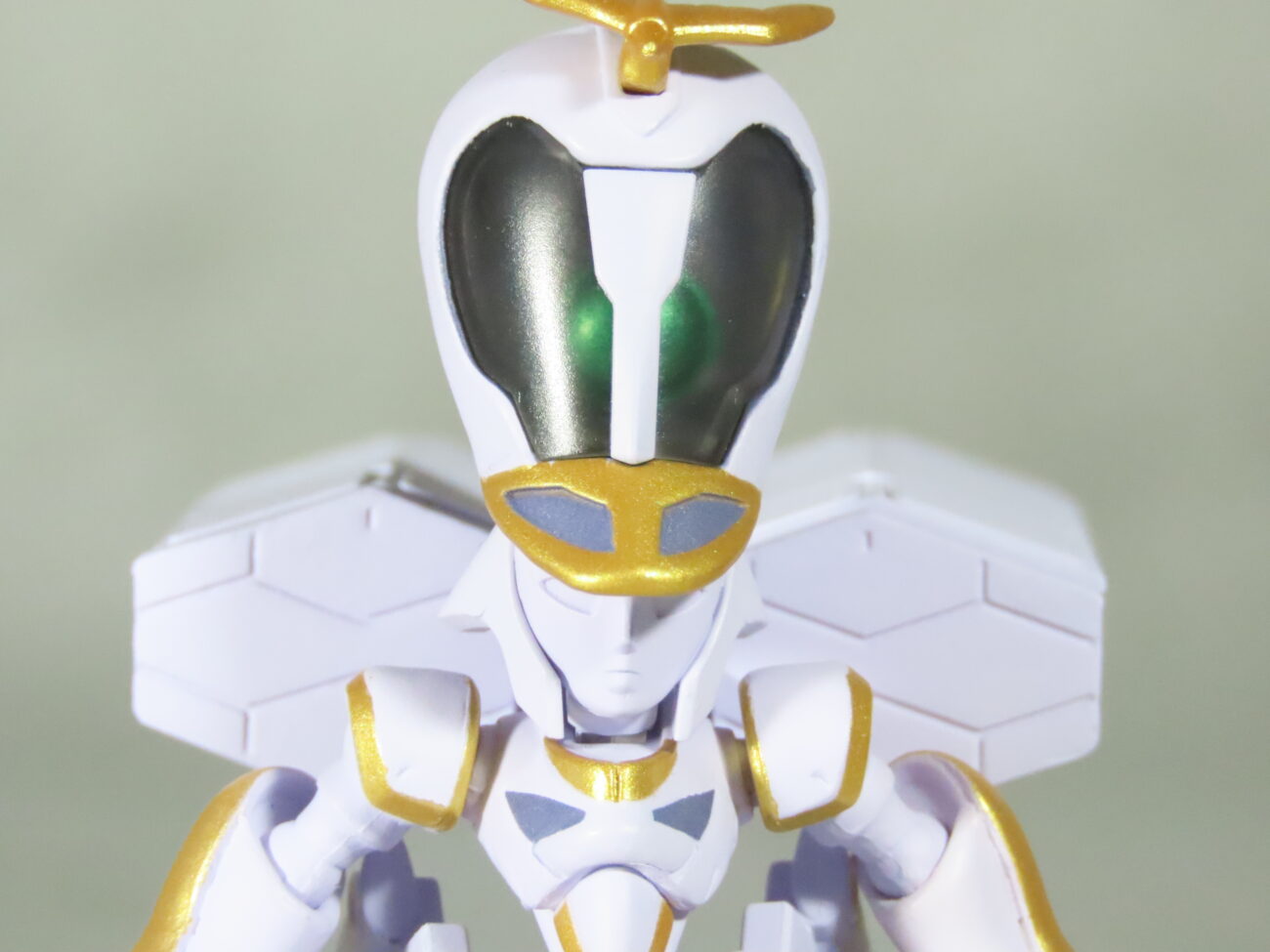 頭部は人間型フェイスマスクに。頭部内部に緑色のセンサーのようなものが見える。